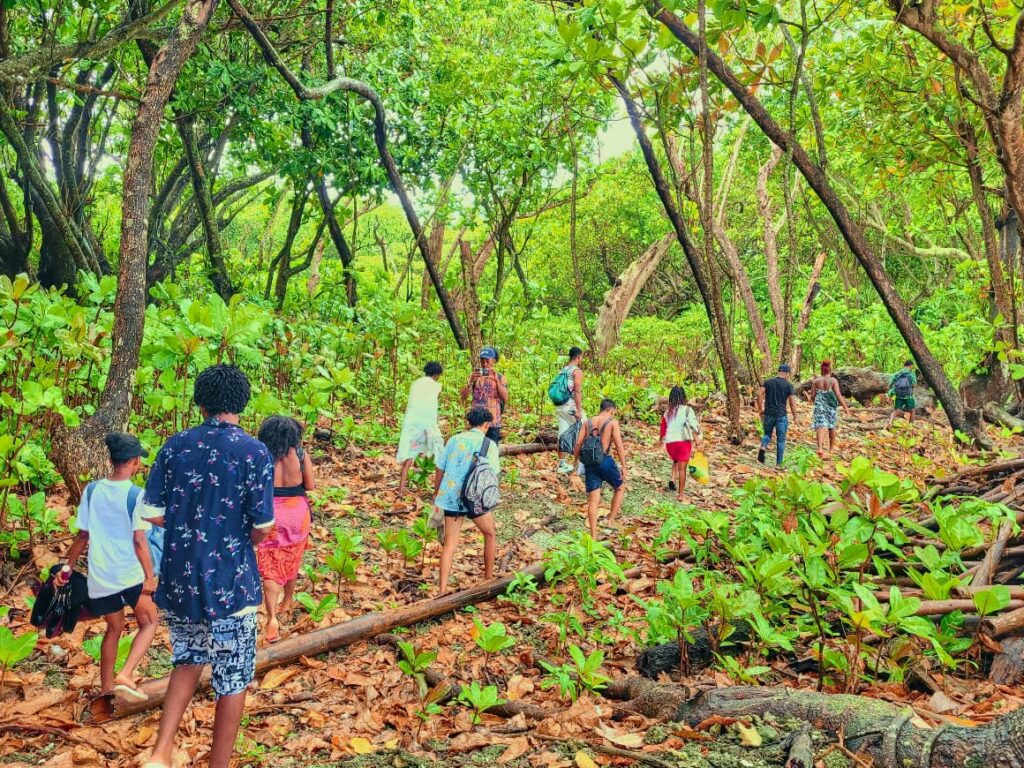 Départ matinal pour se rendre à l’Île aux Prunes. Un lieu unique, loin des bruits électroniques, seulement bercé par le bruit des vagues. Tout est vert et bleu. Bien sûr, car en y arrivant, on découvre la beauté de la forêt de cette île et de l’océan. Imaginez-vous flâner le long du littoral, respirant un bon air frais, en contact direct avec la nature. Même en bateau, vous ressentirez déjà une sensation de liberté. En observant aux alentours, vous réaliserez à quel point cet endroit est exceptionnel. Cela mérite d’être vu et d’y passer un bon moment.