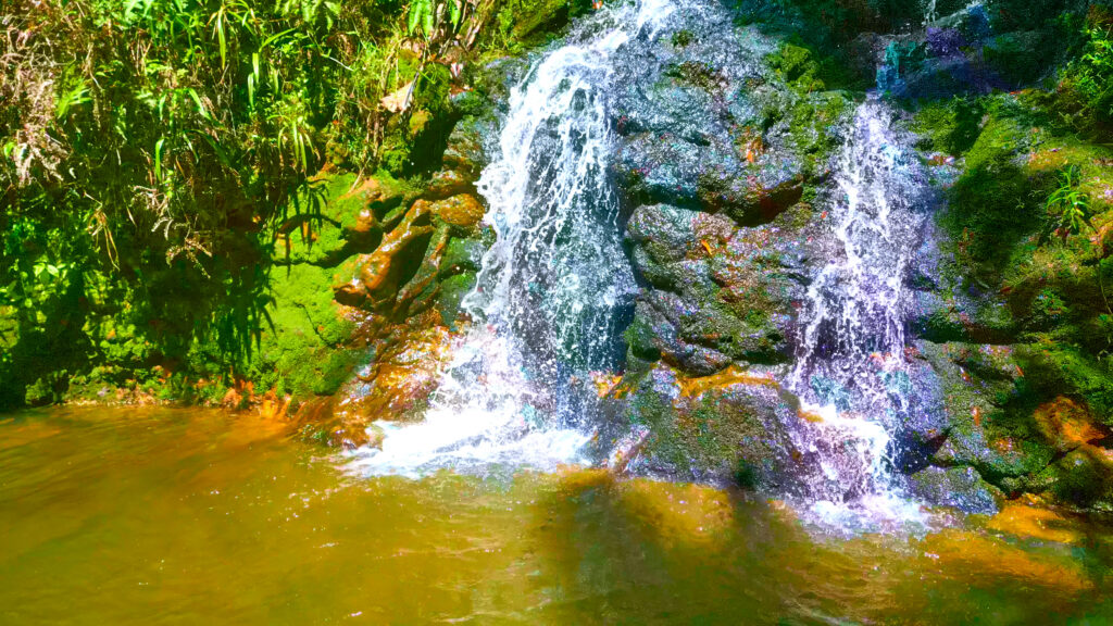 Après s’être immergé dans la faune et la flore, il est temps de découvrir autre chose. En traversant un pont, on accède à un sentier qui mène à une cascade. C’est un lieu calme, loin des bruits, où l’on n’entend que le son de l’eau qui tombe. Vous pouvez vous baigner si vous en avez envie, ou simplement profiter du paysage et prendre quelques photos.